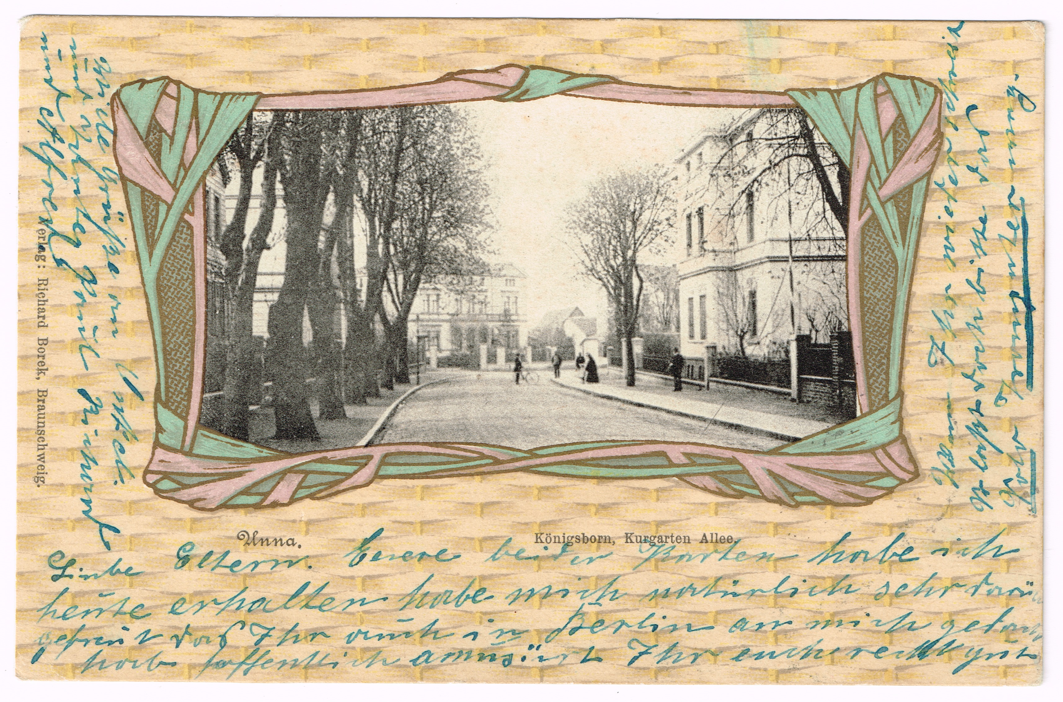 Das älteste mir bekannte Foto eines Fahrrads in Unna stammt aus einer Postkarte (kolorierte Lithographie, verschickt am 2. September 1899) und zeigt den Standort des Fotografen in der Nähe des Geschäfts von Emil Schulze-Brockhausen. Dieses Bild kommt in vielen Varianten auf Postkarten vor.