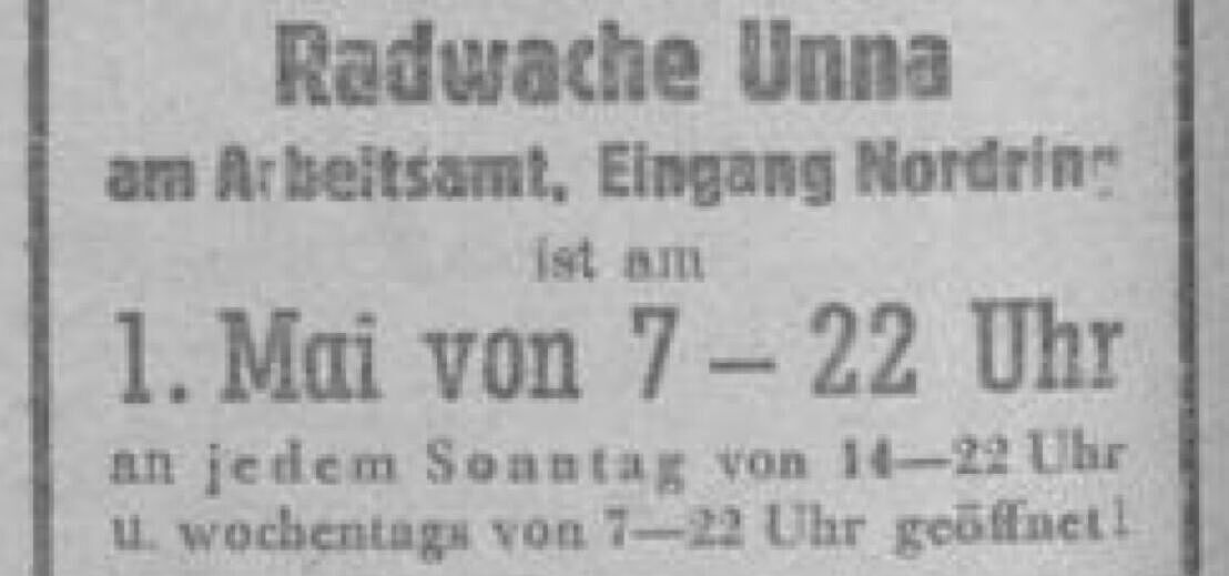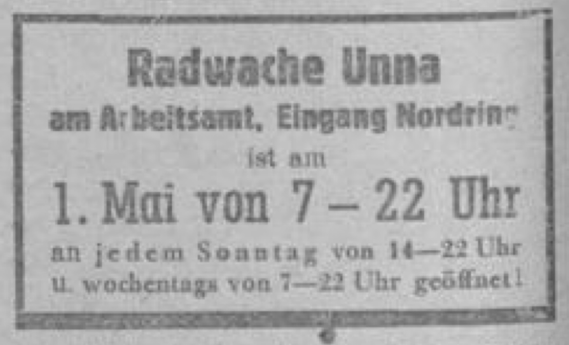 Ein Mittel gegen die zahlreichen Diebstähle sollten sogenannte Radwachen sein. So erschien am 20. April 1949 eine Anzeige, die die Eröffnung einer neuen Radwache am Nordring am 1. Mai 1949 vor dem Arbeitsamt am Nordring ankündigte. Sie war werktags von 7 bis 22 Uhr sowie sonntags von 14 bis 22 Uhr geöffnet.