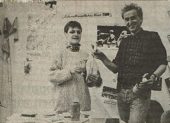 Kessebürens Ortsvorsteher Gerd Heckmann und ADFC Sprecher Helmut Papenberg gaben die fehlenden 650 Radwegmeter frei - nicht wie sonst üblich durch ein Zerschneiden eines Bandes, sondern durch ein Zerplatzen eines Fahrradschlauches.
