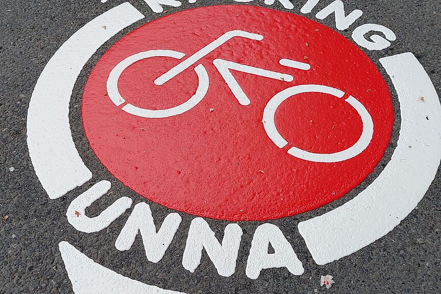 Der am 03.02.2021 im Rat der Stadt Unna beschlossene Innenstadt-Radring hat nun sein erstes Piktogramm auf der Straße bekommen.