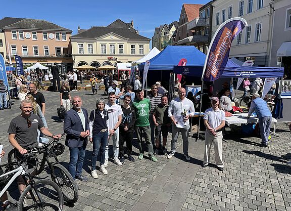 Karsten Pfützner, Heiko Giller und Angelika Planert-Fahrenhorst, Kenti Niederdräing und die SchülerInnen der Fahrrad AG der Peter-Weiss-Gesamtschule